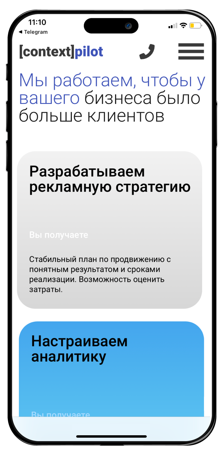 Дизайн блока “Мы работаем, чтобы у вашего бизнеса было больше клиентов” актуализирован и встроен в новую стилистику сайта